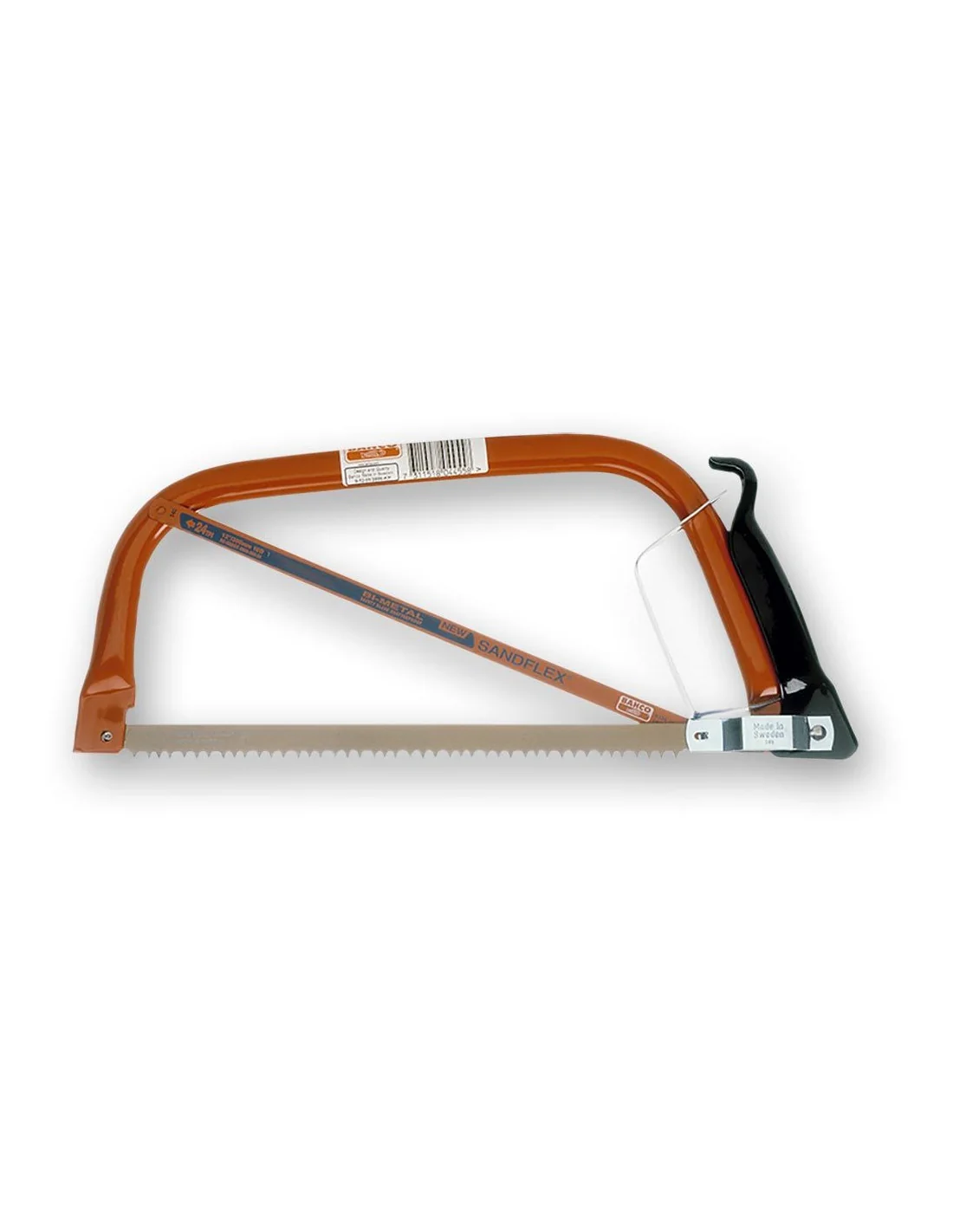 Bahco 9-12-51/3806-KP Bowsaw is a lightweight yet heavy-duty 12in saw for all round use. The handle with its built-in hand guard protects user's knuckles. Blade changing and tensioning is effortless. Ideal for cutting wood. This saw can also take a bi-metal hacksaw blade, which is supplied.-bg