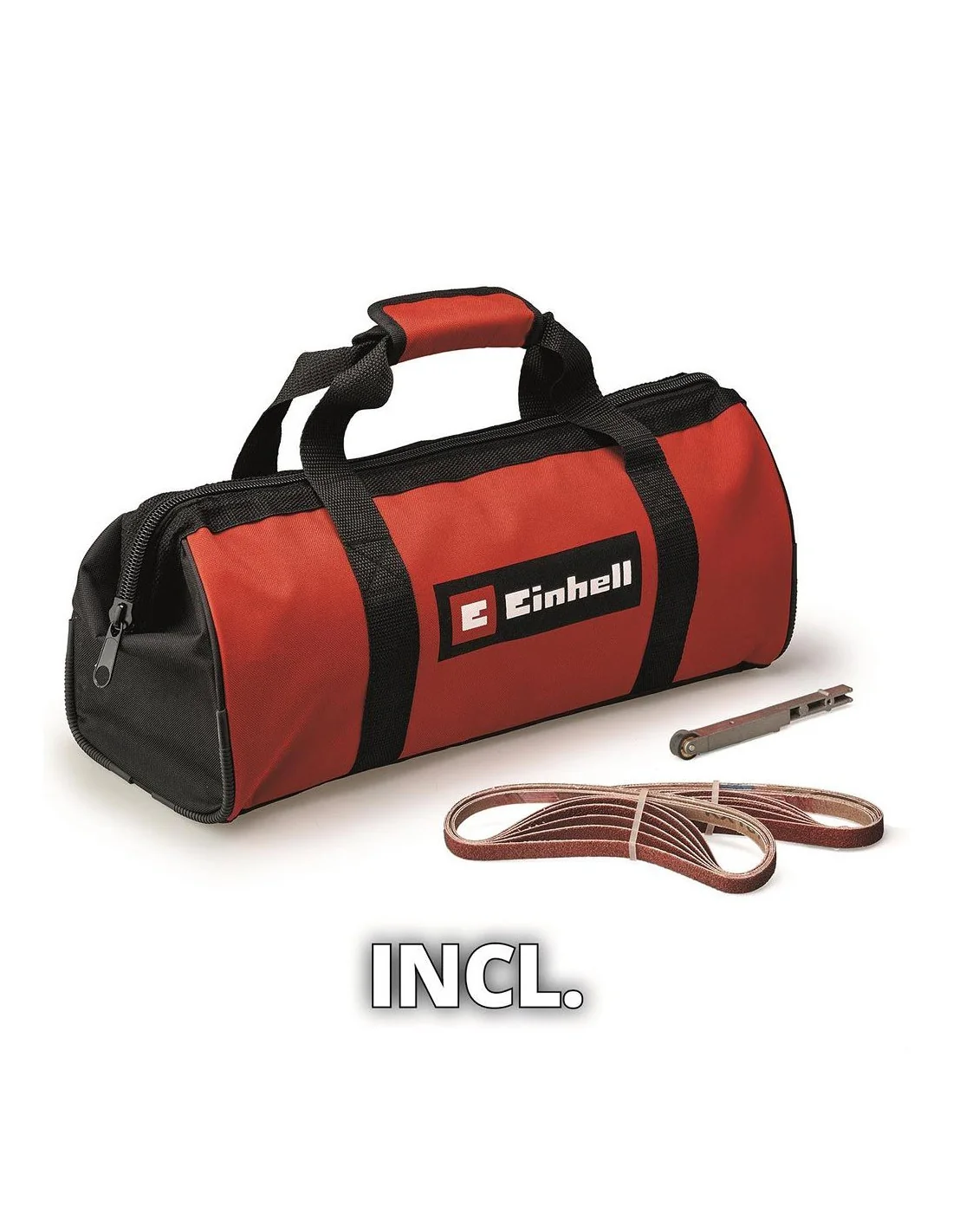 The Einhell TE-BF 18 Li-solo Power X-Change Belt File is a practical, handy tool for grinding and deburring hard-to-reach areas. The narrower 9mm grinding arm is perfect for tight spaces and for grinding very small, intricate work pieces. With the wider 13mm grinding arm, even larger, flat surfaces can be tackled. The grinding arm can be pivoted by up to 90Β°, which gives the flexibility to work from various positions and makes it easier to machine hard-to-reach areas. The speed regulator allows the sanding belt speed to be adjusted between 250 and 1,700 m/min, so it can be tailored to the work piece at hand and the desired material removal rate. This means the tool can adapt to wide variety of materials. For more time-consuming work, the handy and lightweight cordless band file has a lock-on button. The sanding belt can be changed via a tool-free, lever-operated mechanism, and the belt tracking is adjusted by a screw on the sanding arm. Thanks to its ergonomic design with Softgrip surfaces, the band file sits comfortably in the hand. The rugged motor housing has a Softgrip cover so it can be used as an auxiliary handle for easy handling. The grinding arm casing is made of solid metal. Supplied with: 2 x Grinding Arms, 6 x Sanding Belts 457 x 9mm (P60, P80 & P120 grit), 6 x Sanding Belts 457 x 13mm (P60, P80 & P120 grit), 1 x Suction Adaptor and 1 x Storage Pouch. Part of the Power X-Change series of tools, 3 Year Einhell Warranty, registration within 30 days required Supplied as body only (no battery or charger). Specifications: Sanding Belt Speed: 1,700m/min. Sanding Belt Length: 457mm. Sanding Belt Width: 9mm or 13mm. Grip Diameter: 40mm. Suction Connection: Γ 35mm. Weight: 1.13kg.-bg