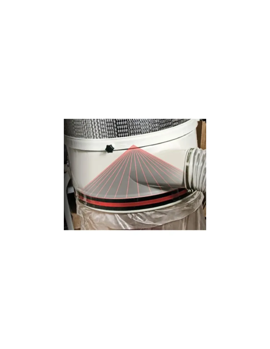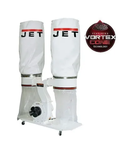 A high-quality dust extractor, for connection to multiple machines. With an airflow of 2,900 m3/hr, it will easily handle 3 machines. It's robust built, quiet run, efficiency and design will suit the majority of requirements found in a typical small carpenter/joinery workshop. Fitted with a high-efficiency steel fan and a unique "Vortex" cone technology which maintains a high collection performance by preventing premature clogging of the filter. Four castor wheels secure overall mobility. Supplied with 10 collection bags and a filtration bag for particles of up to 30 microns. Hose not included.
