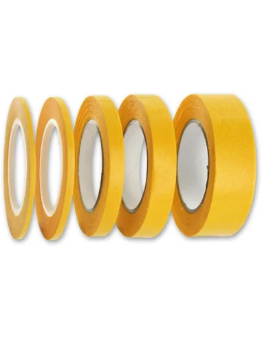 Masking tape is one of those items that will usually cause immense irritation when a poor quality product is used. It will refuse to stick and if it does will generally peel off at the slightest provocation. Not so with Model Craft Precision Masking Tape. This is a thin, but very strong paper tape which will stick to almost any surface allowing a precise and intricate masking facility for smaller modelling applications. It is UV protected for masking projects in direct sunlight and, because it is so thin, there is very little chance of paint 'bleed' or annoying paint lines. Each roll is 18m long and is available in five different widths.-bg